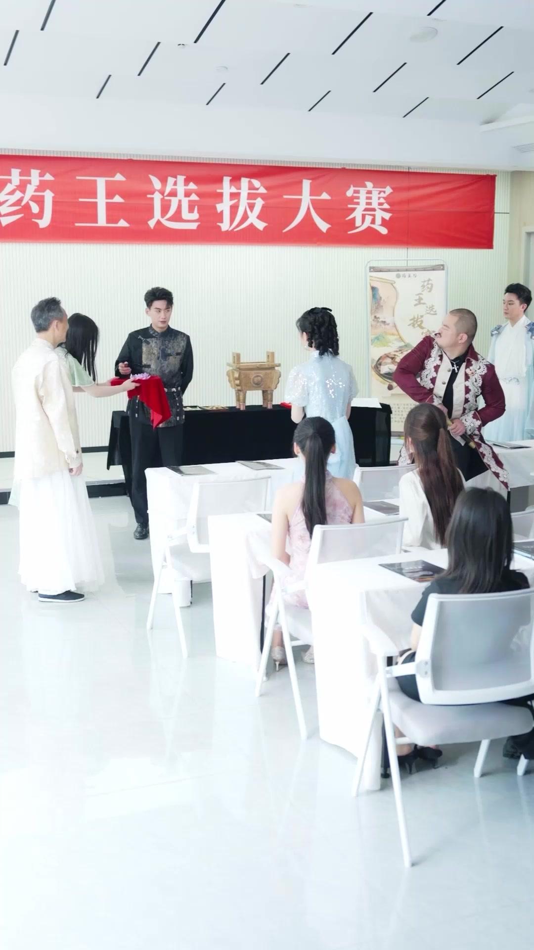 The ‘Pharmacist King Selection Contest’ banner hangs like a joke above a stage where no medicine is dispensed—only ego, anxiety, and the slow unraveling of carefully constructed personas. This isn’t about healing. It’s about hierarchy. And in Afterlife Love, hierarchy is never stable; it’s a house of cards built on glances, gestures, and the unbearable weight of expectation. Watch closely: the real battle isn’t between Lei Feng and Jiang Yun. It’s between Lei Feng and himself. Every flourish of his sword, every widening of his eyes, every desperate upward gaze—he’s not addressing the room. He’s pleading with a version of himself that he fears has already vanished.