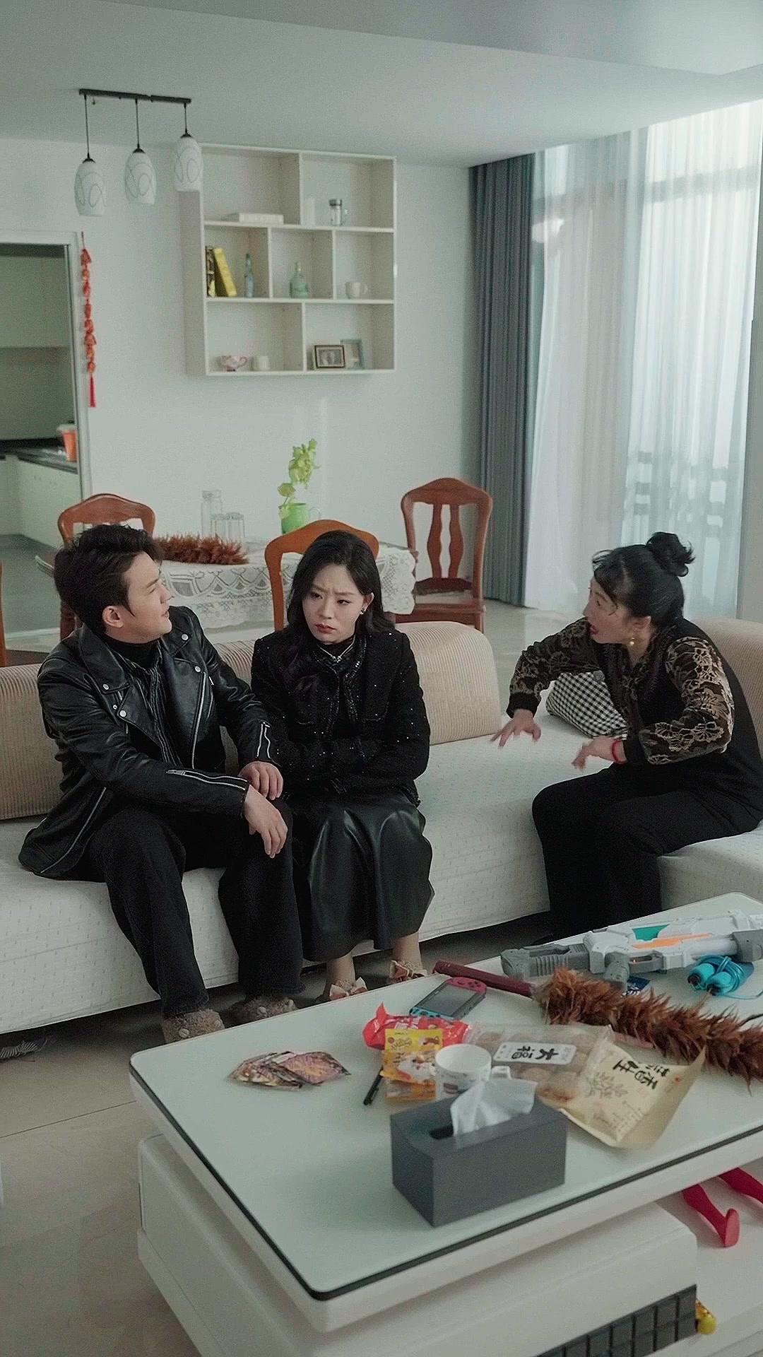 The setting itself contributes to the unease. The apartment is pristine, modern, *designed*—yet it feels hollow. The white shelves hold decorative objects, not memories. The dining table is set for four, but only three are present. The red door in the background is not just a door; it is a threshold. To walk through it would be to abandon the conflict, to choose self-preservation over entanglement. None of them do. They stay. Because family is not about choosing comfort. It is about choosing to remain in the discomfort, again and again, hoping that someday, the language will evolve, the wounds will scar over, and the thief under the roof—the one who steals tranquility, who hides in the rafters of expectation and obligation—will finally be named, confronted, and perhaps, forgiven.