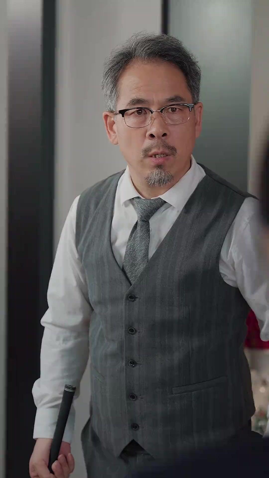 In the opening frames of *Through the Storm*, we’re thrust into a world where decorum is a thin veneer over simmering chaos. The elder man—let’s call him Mr. Lin, given his measured cadence and silver-streaked hair—stands rigid in a charcoal vest, white shirt, and patterned tie, gripping a black cane like it’s both weapon and shield. His glasses catch the light just so, framing eyes that flick between disbelief, calculation, and something colder: disappointment. He isn’t shouting. He doesn’t need to. His mouth opens slightly, lips parting as if to speak, then closing again—each micro-expression a silent indictment. Behind him, a woman in crimson silk clutches her chest, not in fear, but in performative shock, her posture too poised to be genuine. This isn’t a family argument. It’s a tribunal.